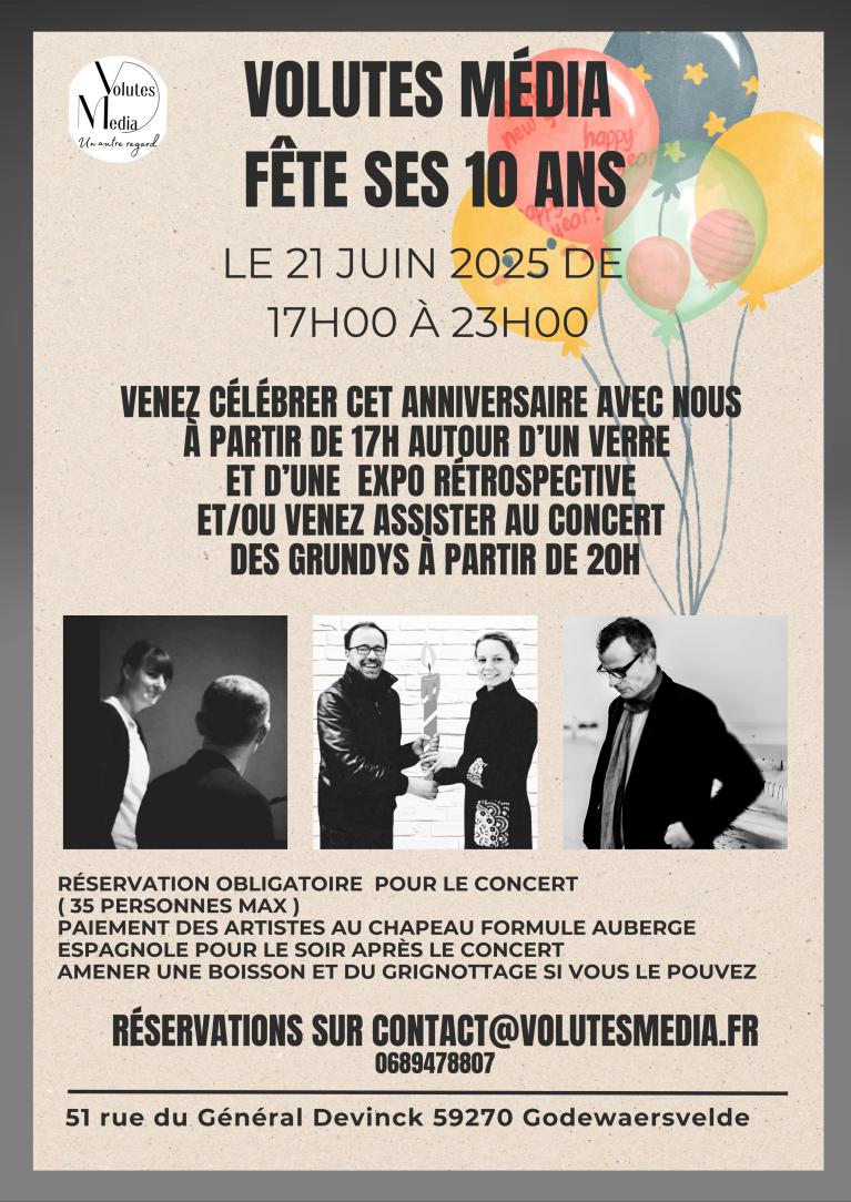 Implantée à Godewaersvelde, en milieu rural et à la frontière franco-belge, Volutes Média développe À CIEL OUVERT, une galerie-studio de création et de médiation culturelle dédiée à la création contemporaine, à la rencontre entre artistes et habitants, et à la valorisation des dynamiques culturelles locales et transfrontalières.